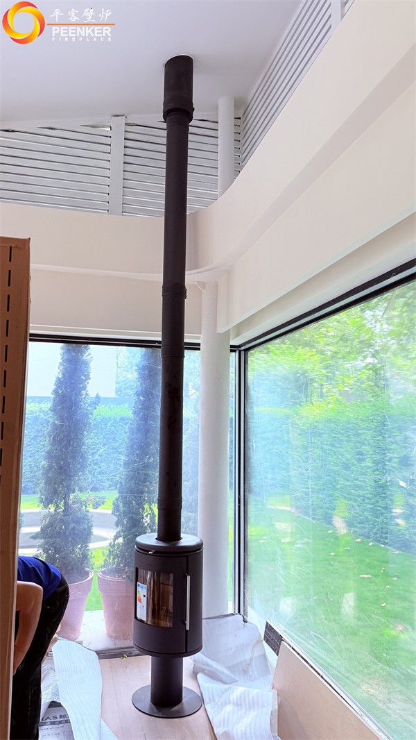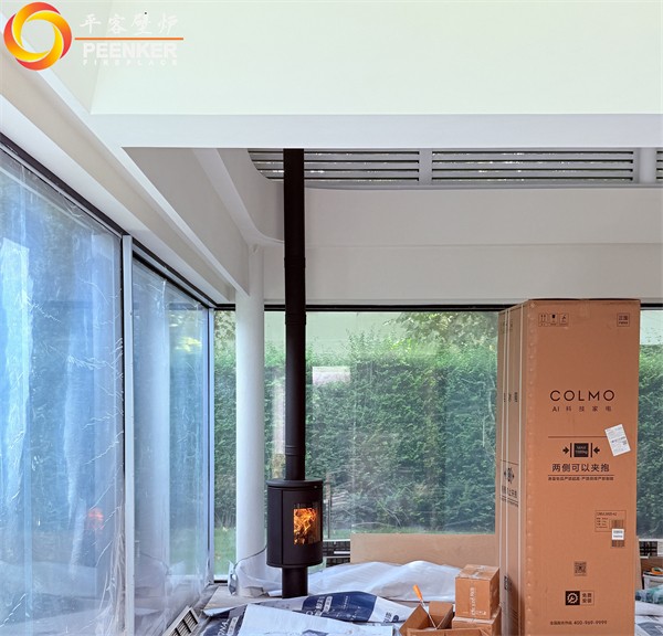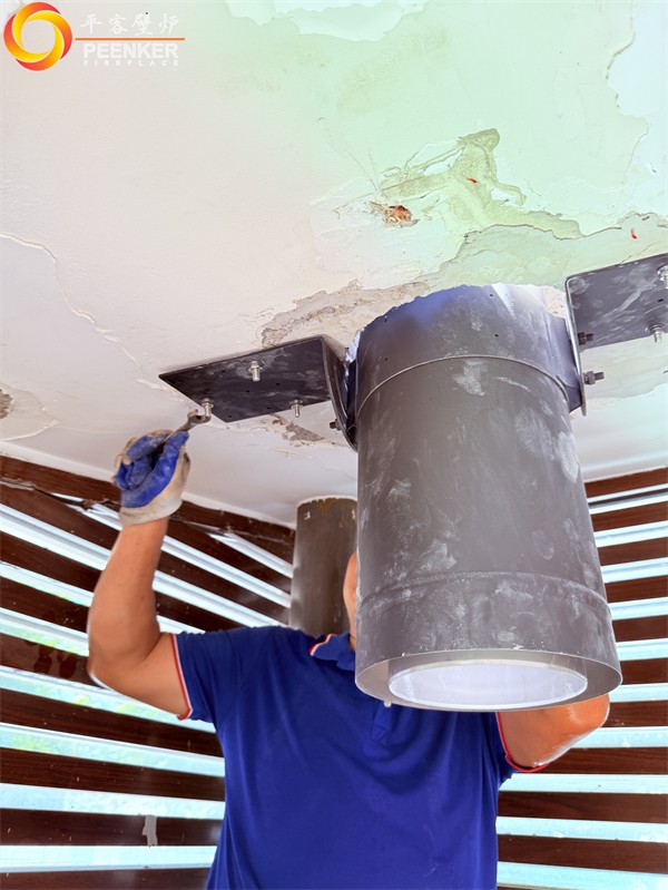 項目情況:該項目位于上海青浦區,7月份根據裝修進度,平客壁爐項目部帶隊上門進行煙囪預埋安裝,煙囪穿斜頂到戶外。今天平客壁爐項目部上門進行壁爐安裝,并現場點火驗收。