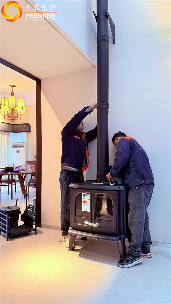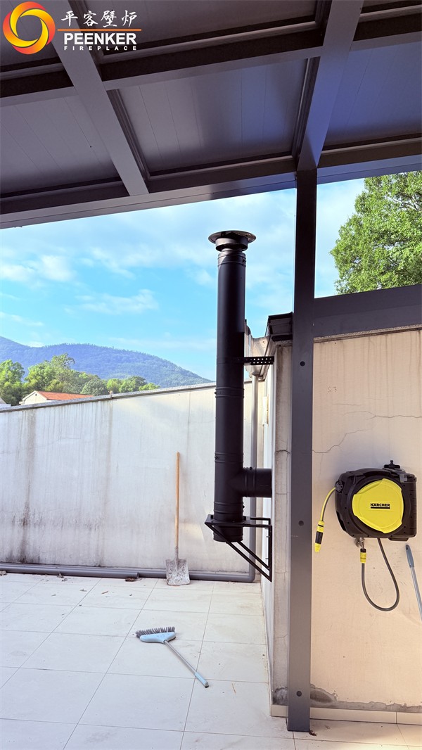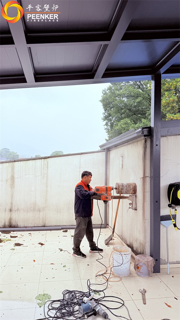 項目情況:該項目位于湖南益陽,為兩層自建別墅,壁爐安裝在挑空客廳位置,煙囪穿側墻到戶外,由平客壁爐項目部帶隊上門安裝。