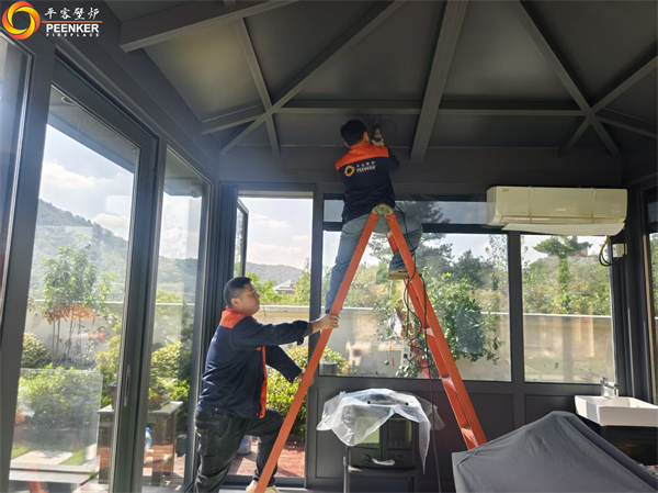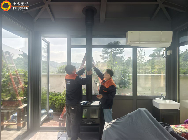 項目情況:該項目位于鎮江紫金7號別墅,壁爐安裝在庭院陽光房中,因壁爐煙囪垂直高度達不到5米要求,戶外使用壁爐風機解決抽力問題。由平客壁爐項目部帶隊上門安裝。