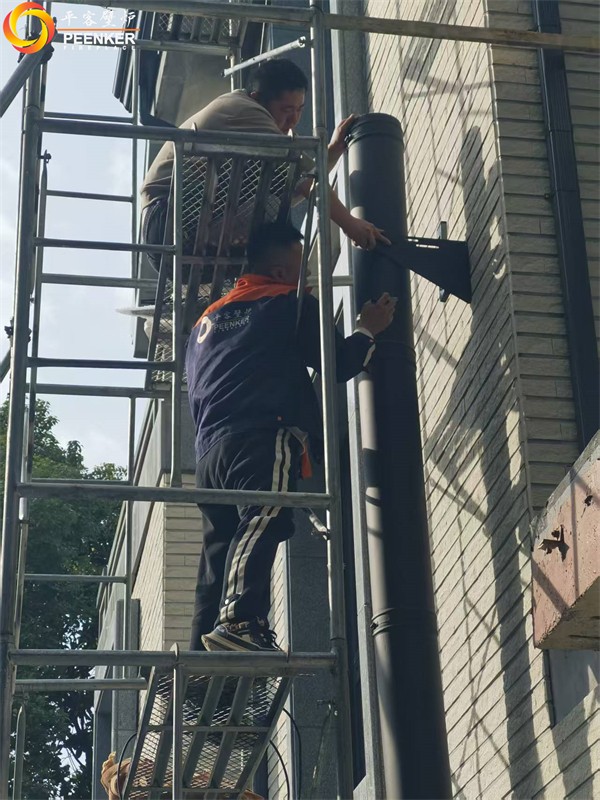 項目情況:該項目位于江蘇蘇州太湖檀宮二期別墅區,壁爐安裝在客廳位置,煙囪穿側墻到戶外加高過屋檐。由平客壁爐項目部帶隊上門安裝。